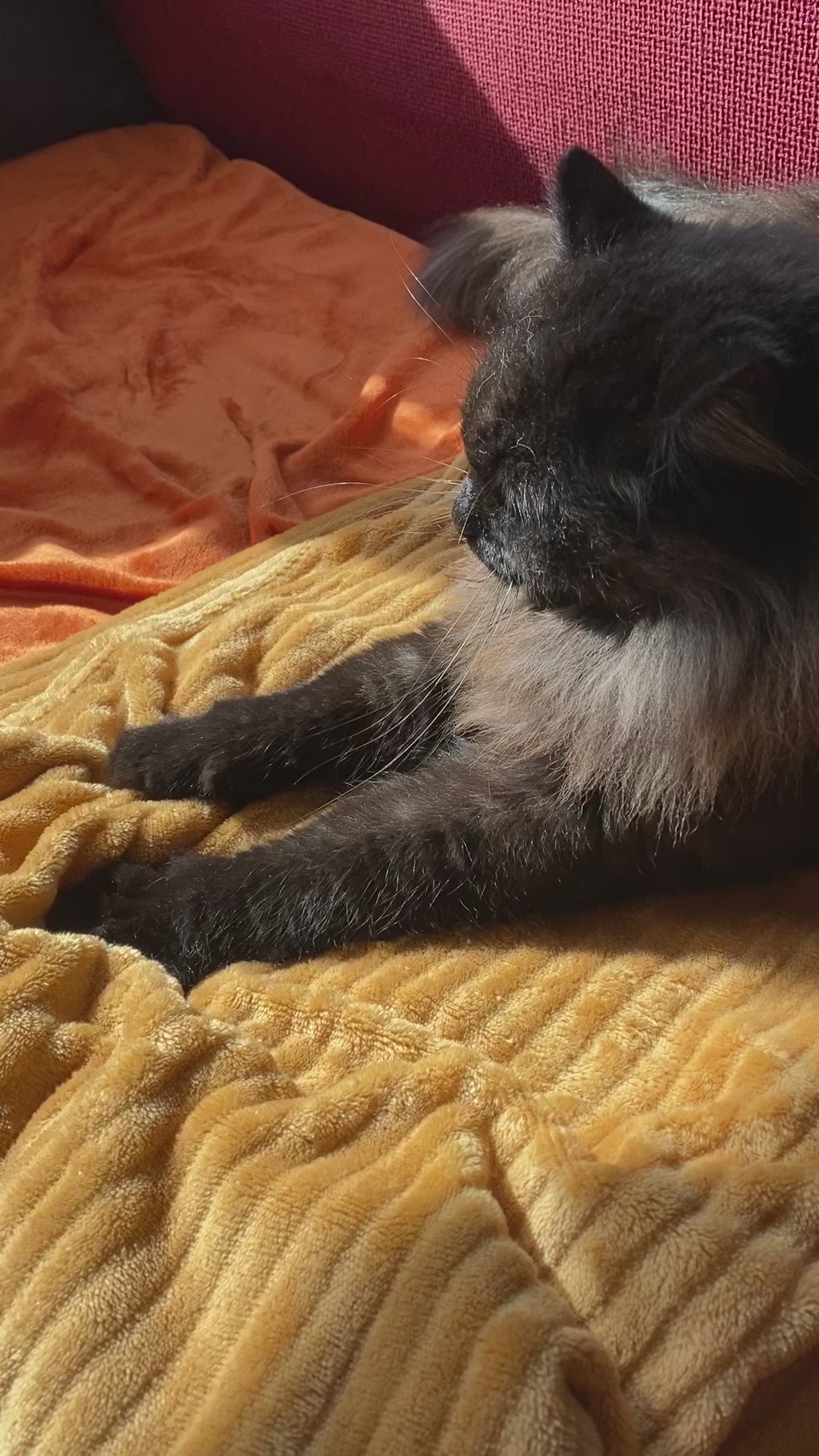 Relaxed cat, purring - – Mobile-Shot Stock Video, Portrait (HD, 9:16)